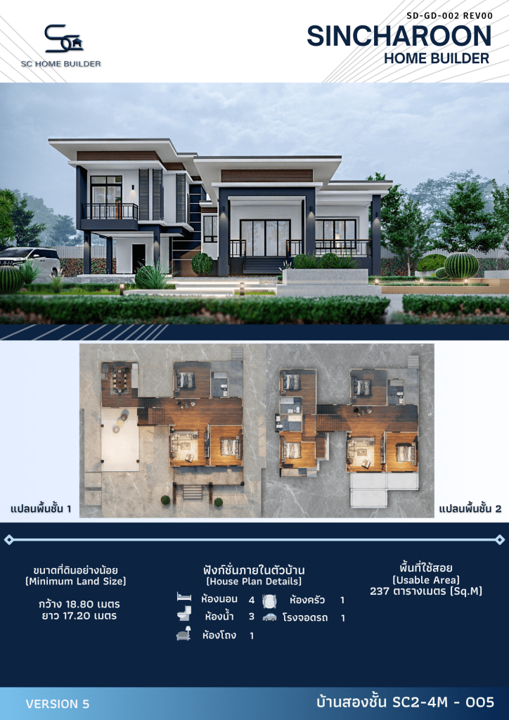 บ้าน 2 ชั้น ช่วงราคาก่อสร้าง 3M – 4M